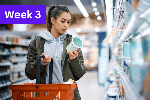 Participants gain confidence in navigating food packaging. They learn to interpret food claims, nutrition panels, and ingredients lists, compare products, and put skills into practice during an in-person supermarket tour.