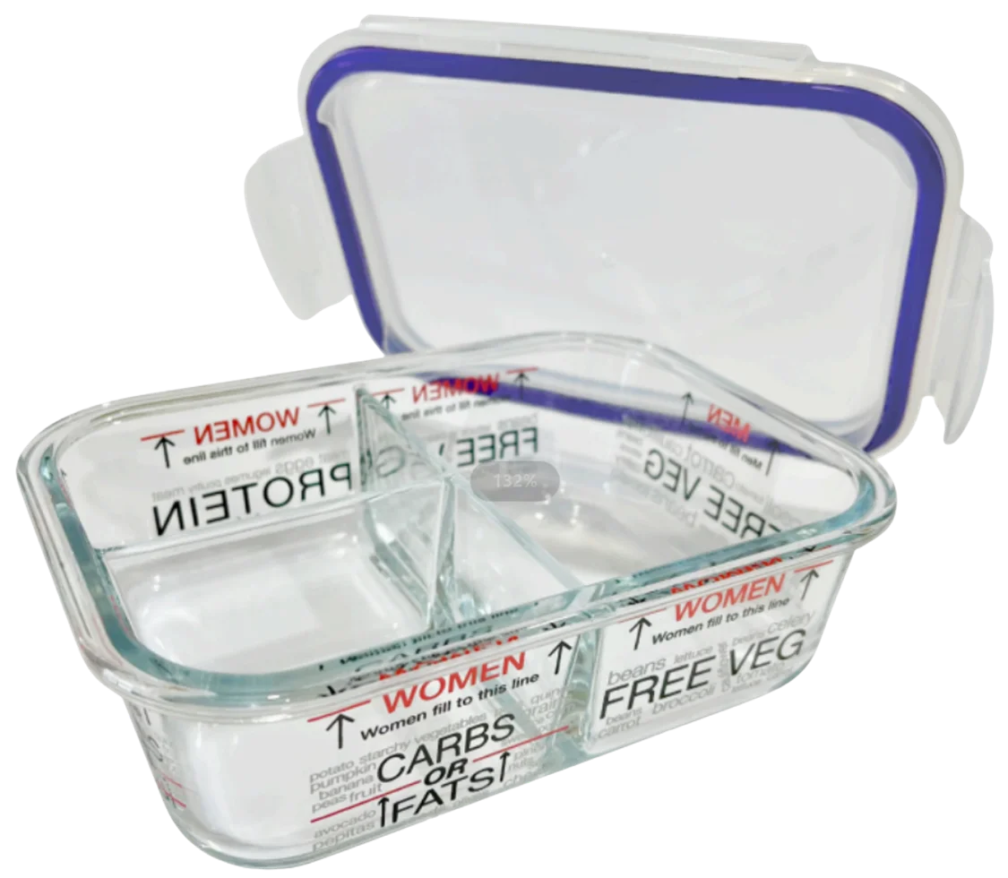 Meals on the go just got easier with the latest product in the Portion Perfection range, called the Porti-Prepper. No more guess work when making your working day lunch with healthy food suggestions printed on each compartment so you know how to portion out your meals. When you follow the guides on each compartment the volume holds the same amount as the Portion Perfection Plate. Get yourself ready for the working week with these perfectly sized meal prep containers. Made from high borosilicate glass these containers are safe from freezer to oven, can be used in the microwave (lid removed) and put in the dishwasher.