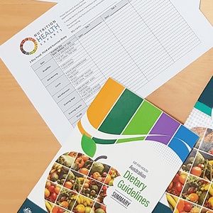 Identify the 5 food groups in your daily intake (highlight each group or write intake in notes)